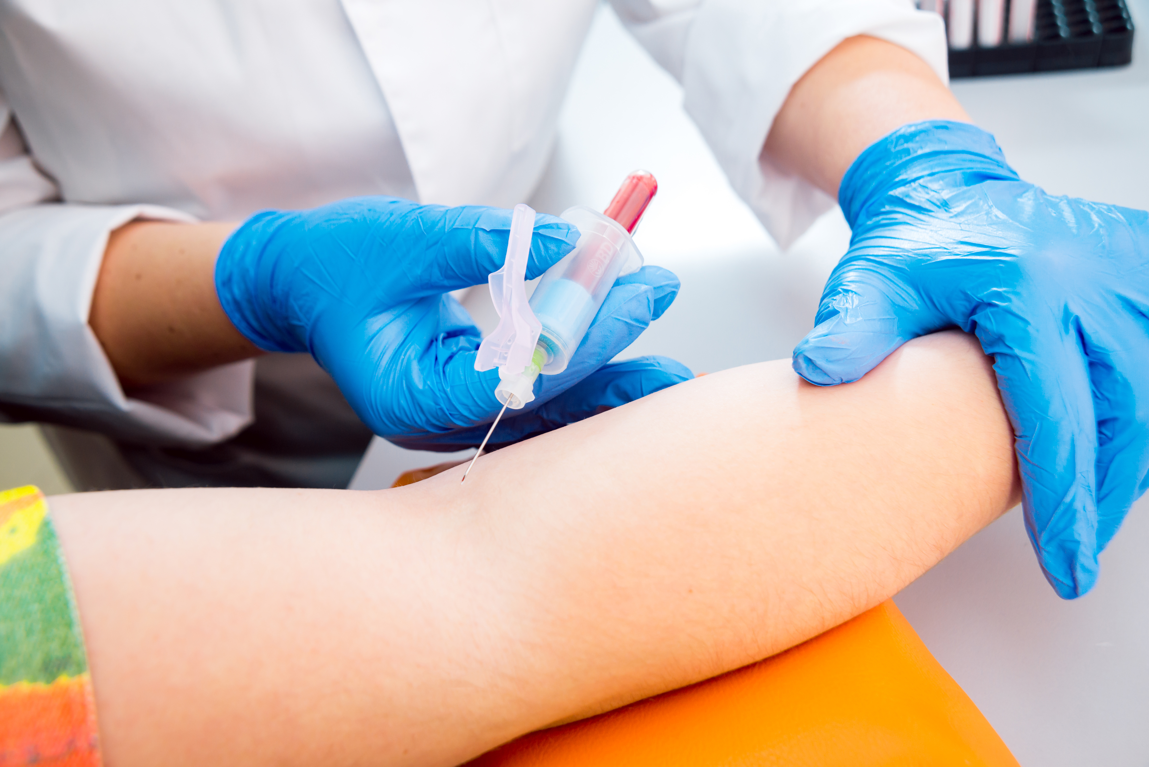 Nurse taking a blood sample from a patient for analysis